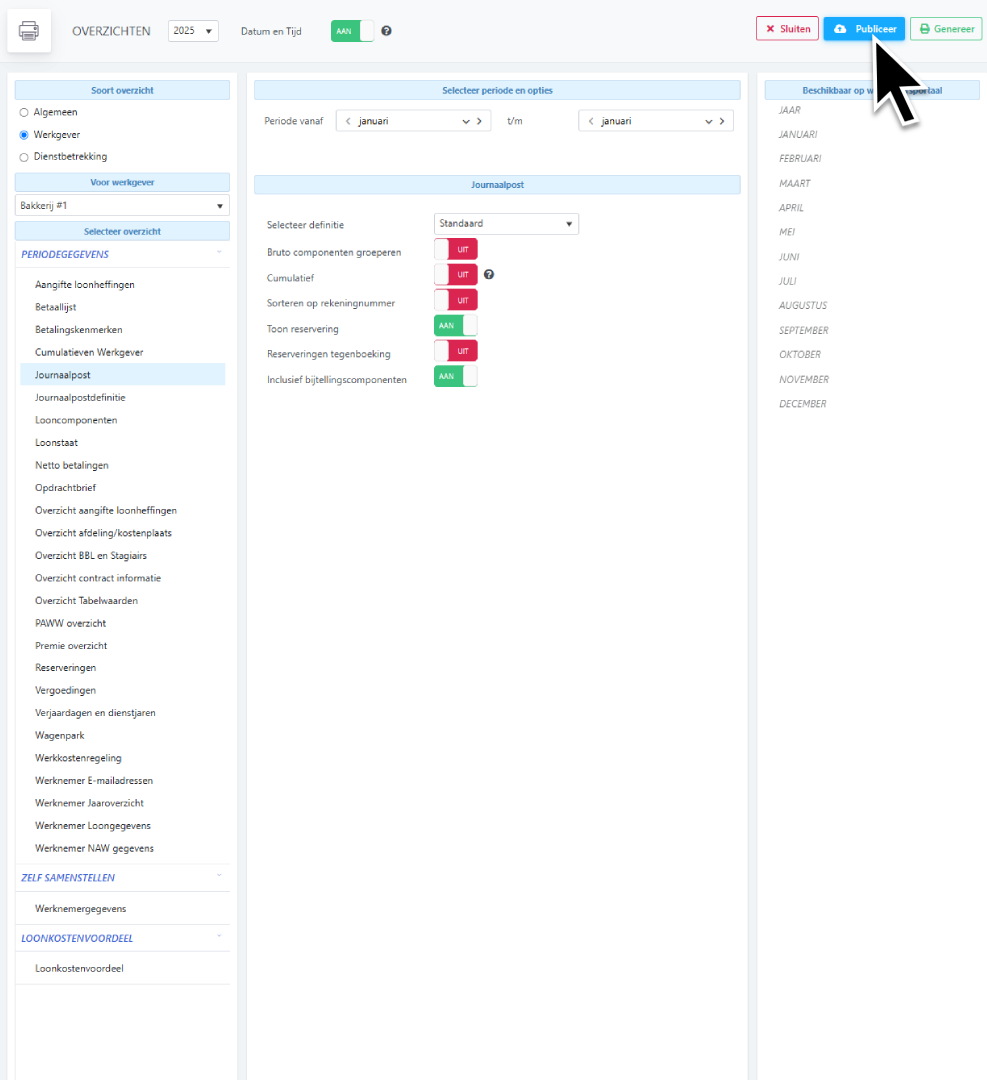 Overzichten op werkgeverniveau (journaalpost, loonstaat, overzichten)