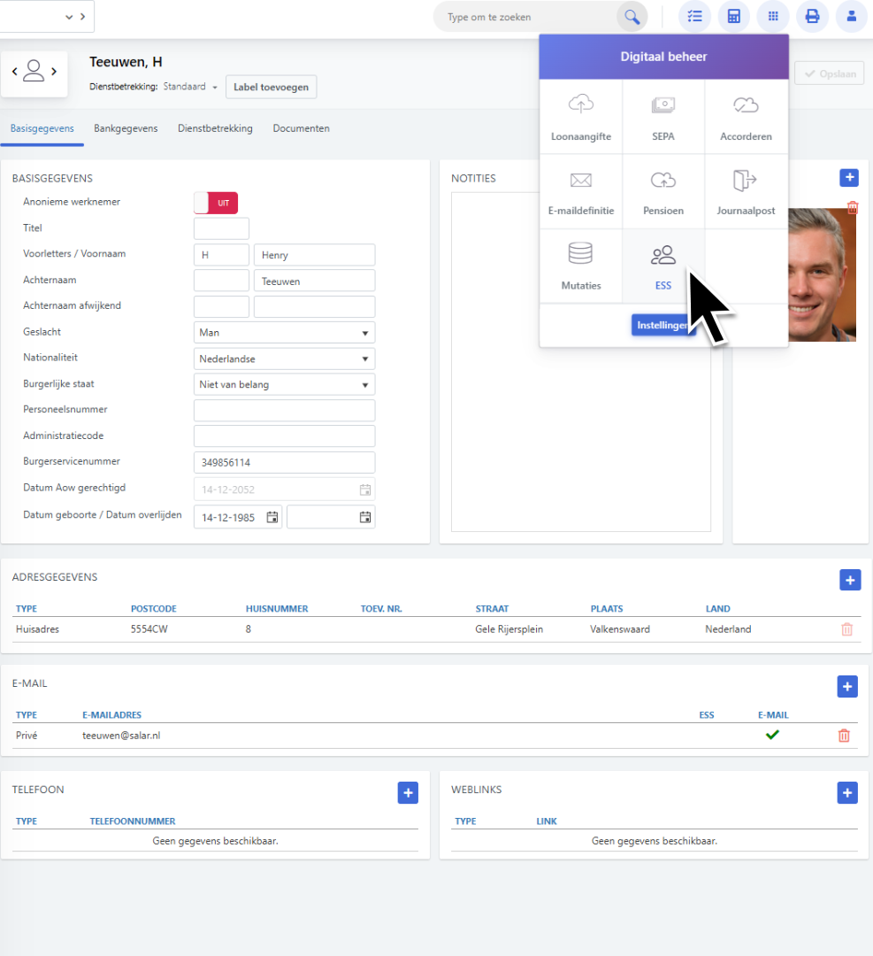Vink de optie Werknemersportaal / ESS aan.