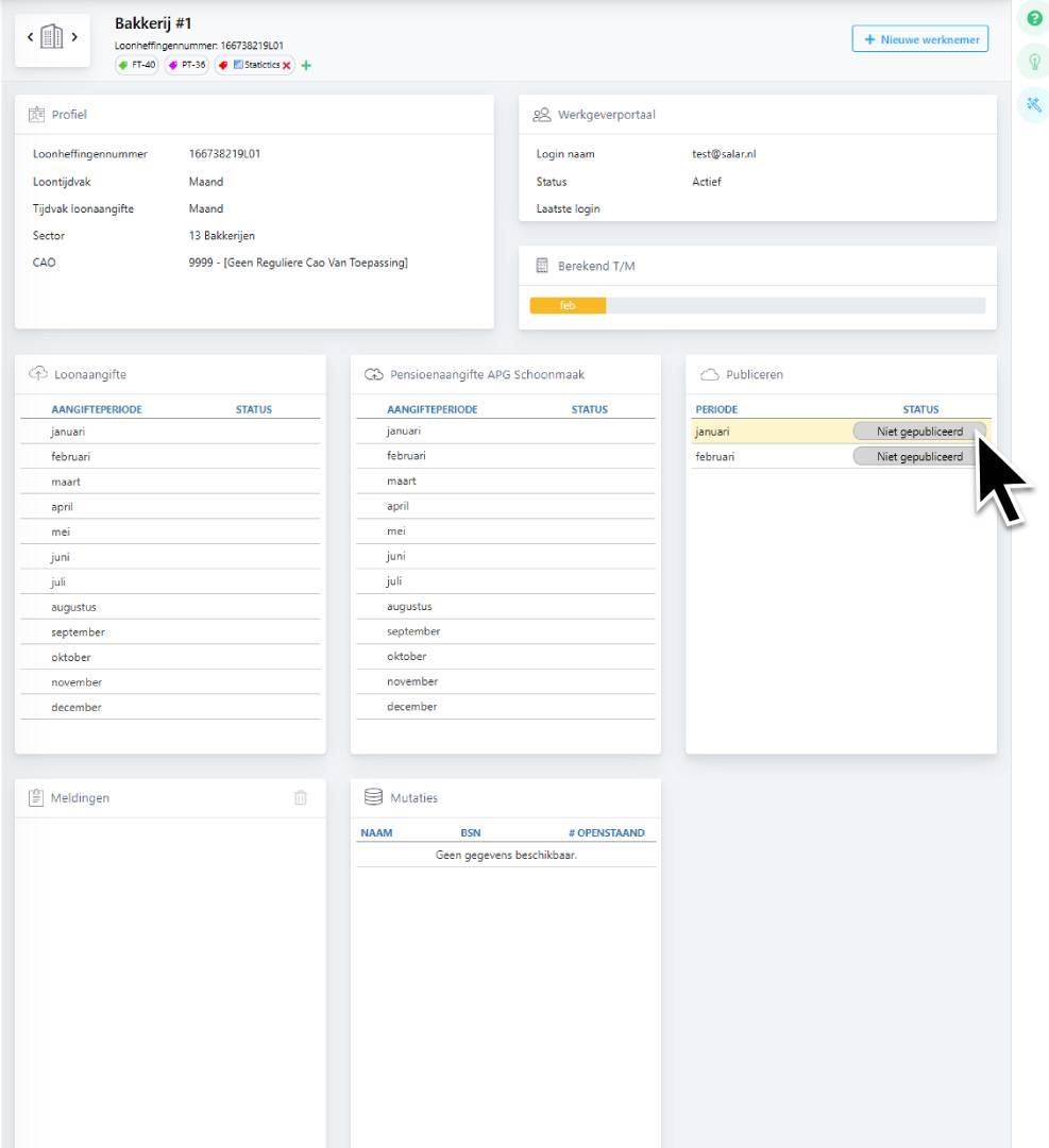 Vanaf dit moment is het werknemersportaal actief. De volgende stap is het publiceren van de loonstroken.