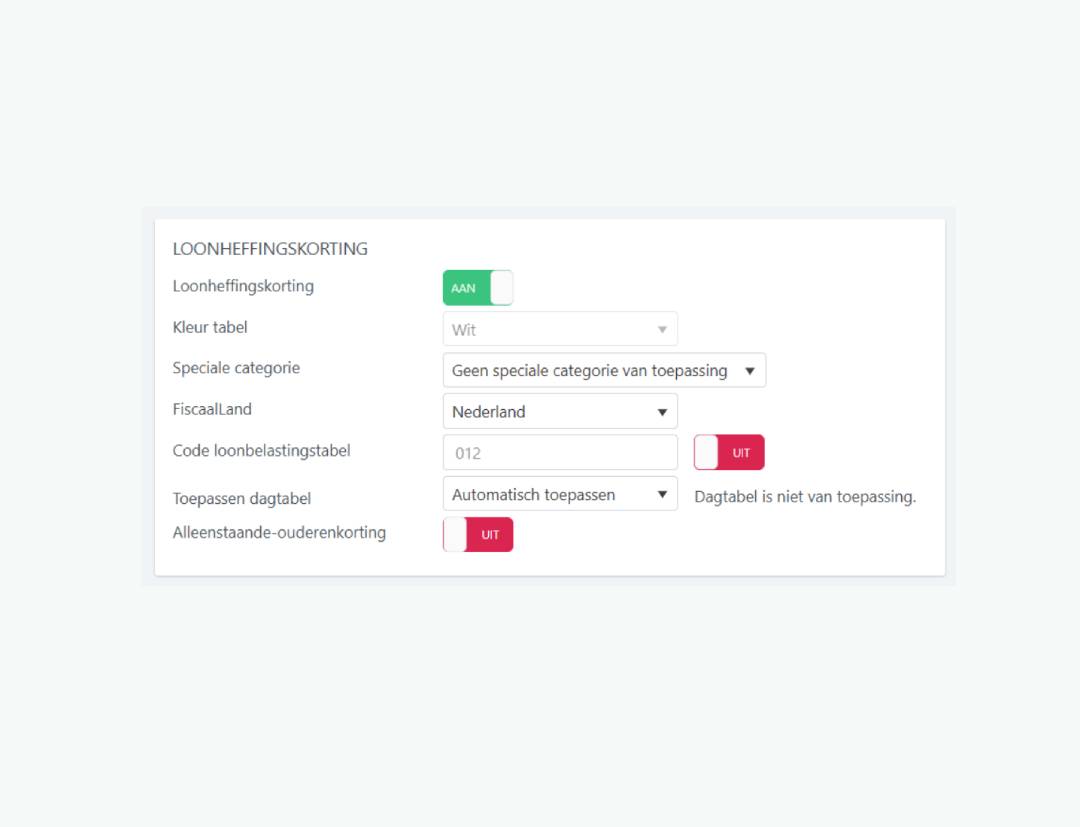 Hier geef je aan of de werknemer wel of geen loonheffingskorting wil toepassen. Die korting zorgt ervoor dat iemand minder loonheffing betaalt.