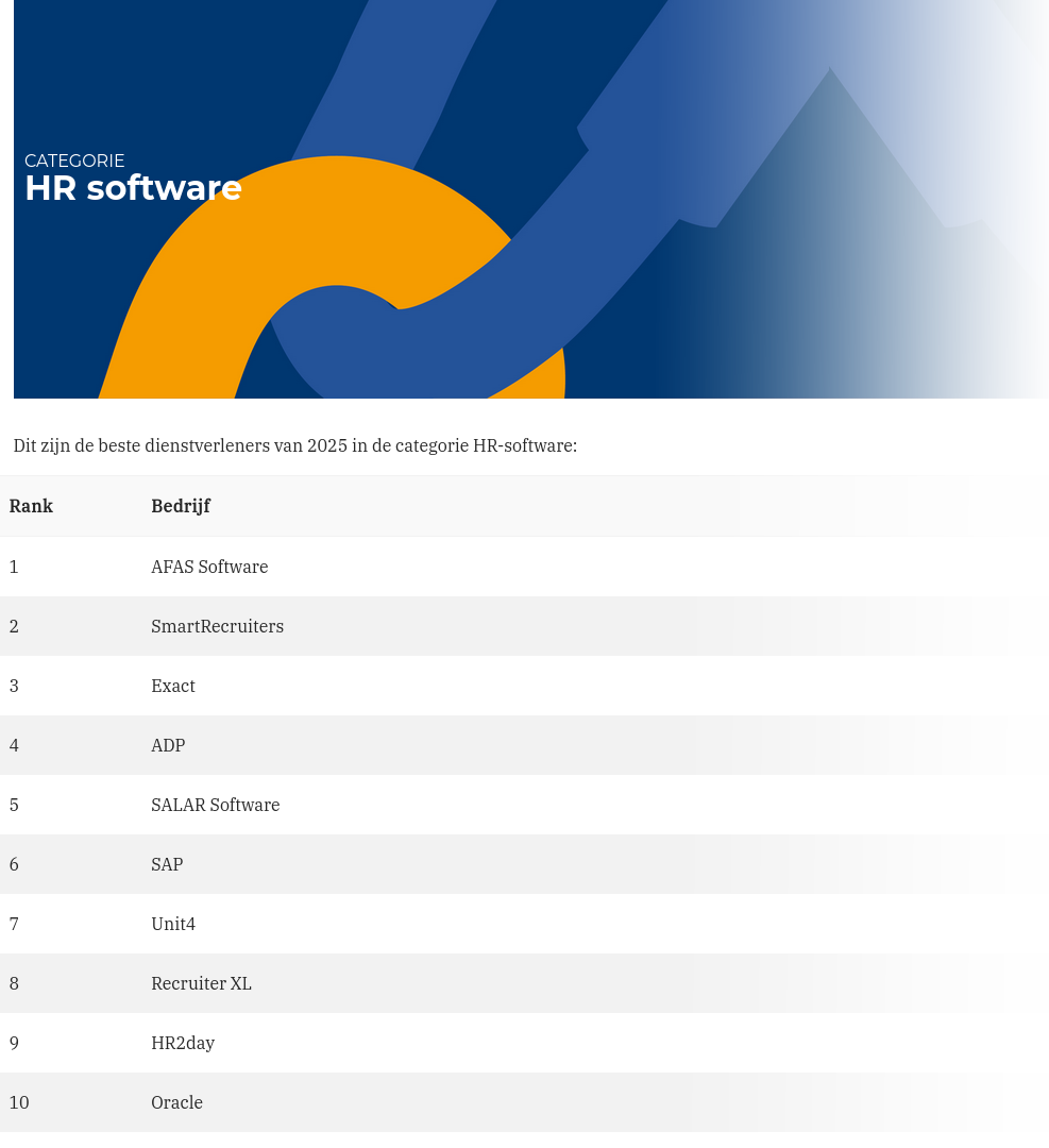 We scoren hoog in de lijst: Beste dienstverleners HR-Software.