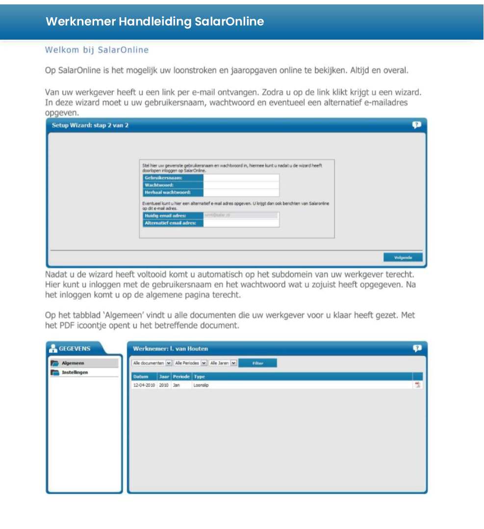 Via dit online tussenportaal haalden werknemers hun loonstroken en jaaropgaves op, terwijl salarisprofessionals SalarOnline gebruikte om mutaties te ontvangen.
