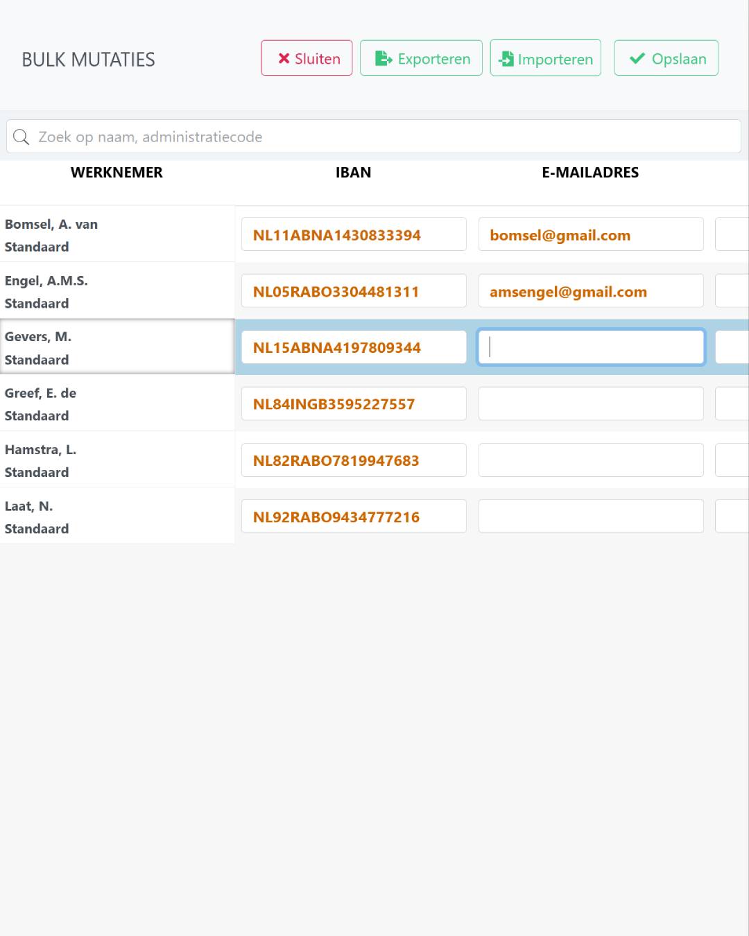 Je ziet nu een overzicht met alle werknemers onder elkaar, met per kolom verschillende gegevens zoals: