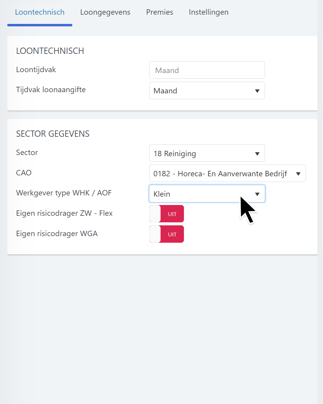 Werkgeverinstellingen – WHK, WGA & cao-premies instellen