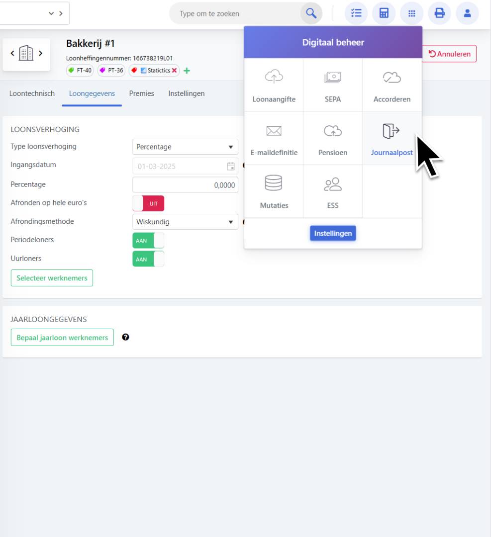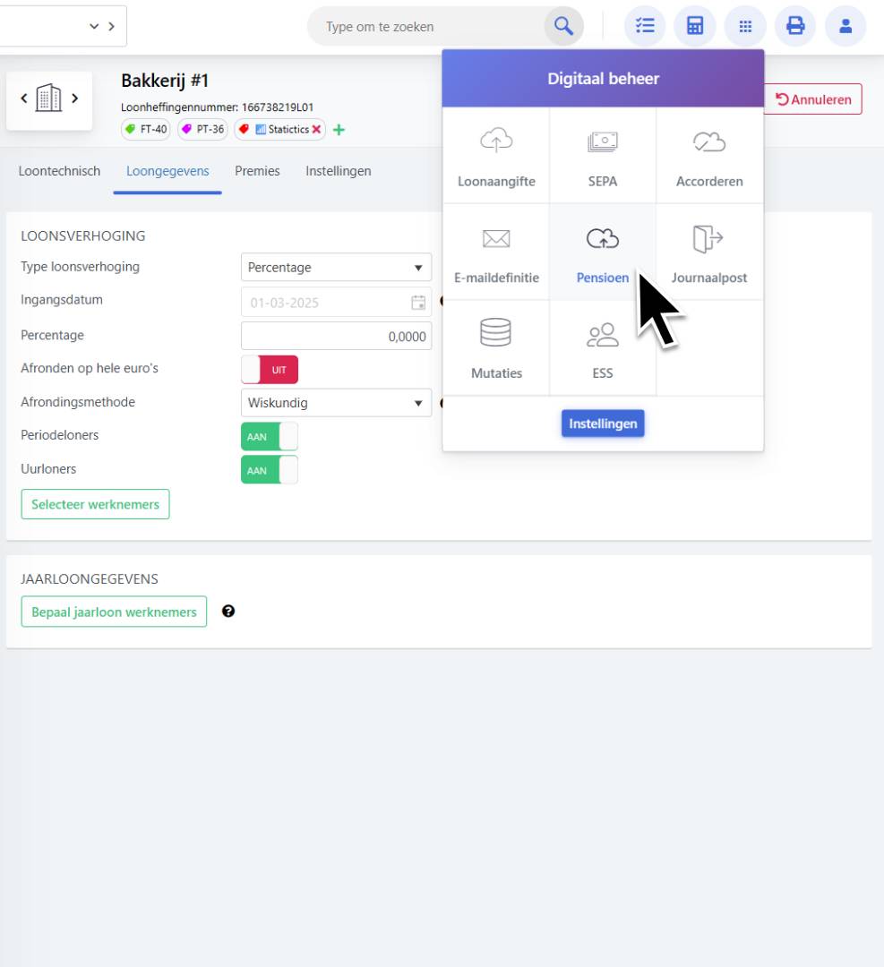Klik op het icoon met de negen puntjes (menu Digitaal).Kies Loonaangifte.