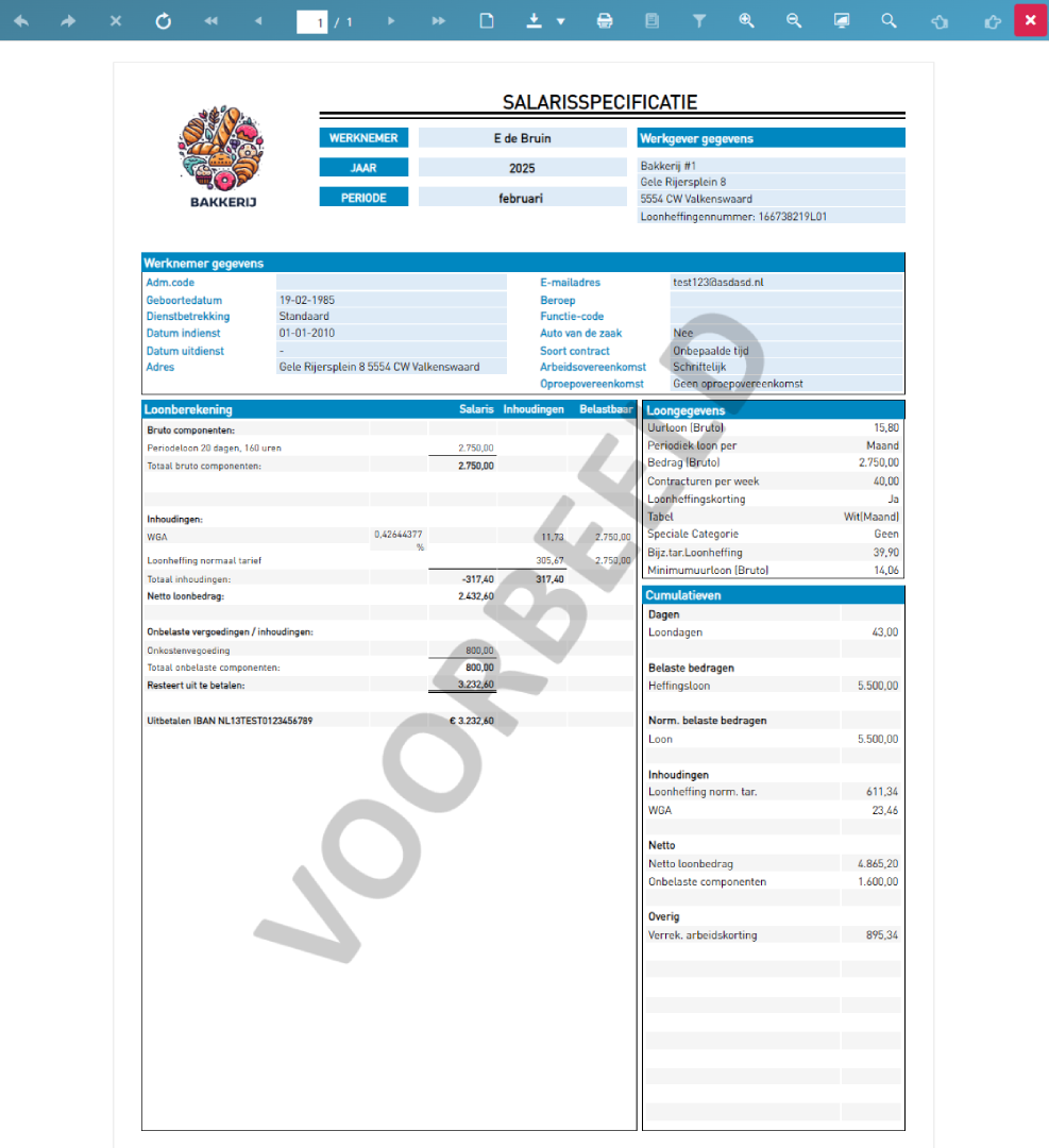 SalarFusion rekent nu per werknemer een voorbeeld loonstrook (proforma) uit.