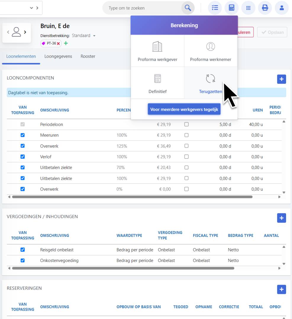👉 Herhaal: controleren → definitief berekenen, tot je alle werknemers gehad hebt.
